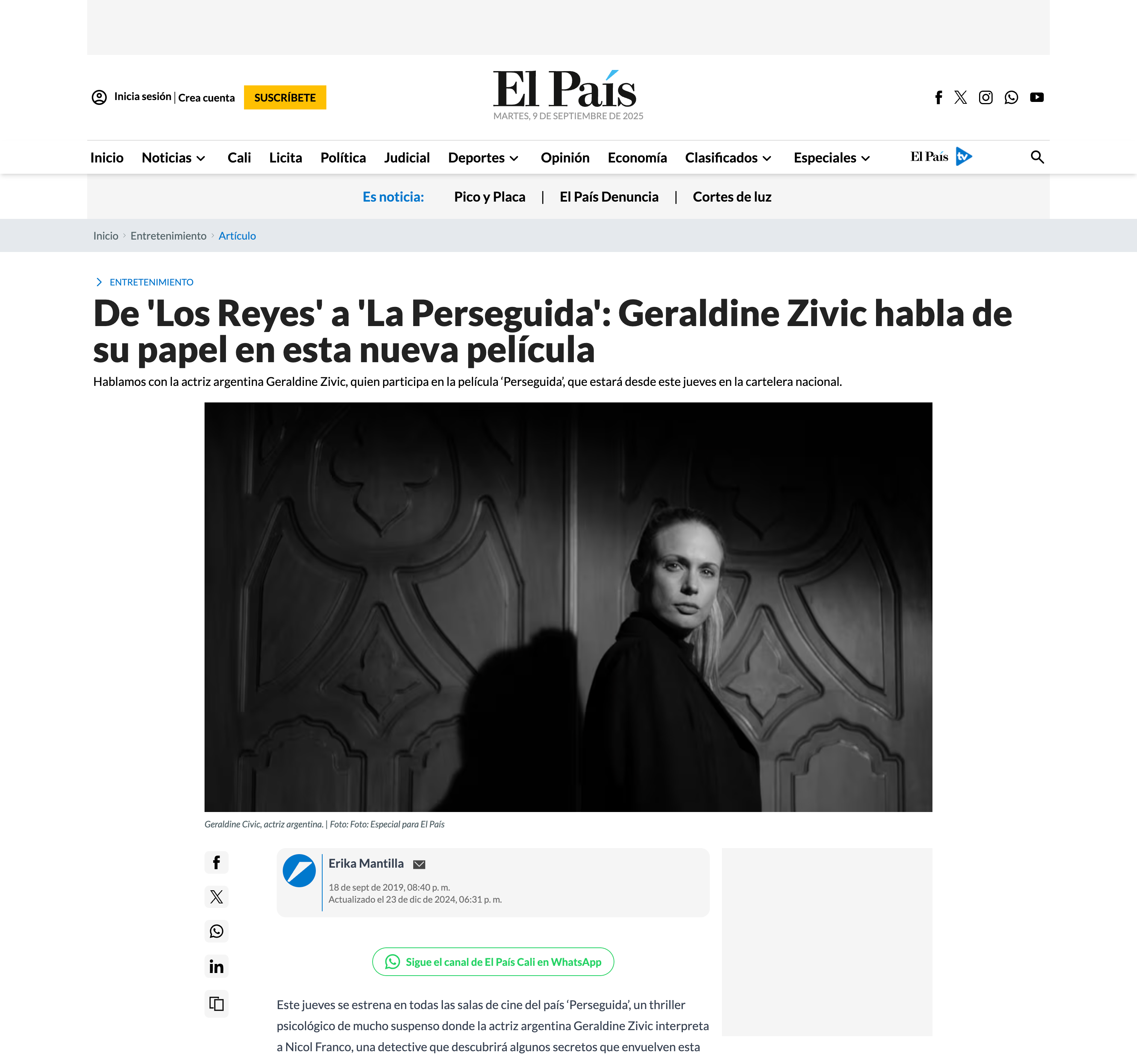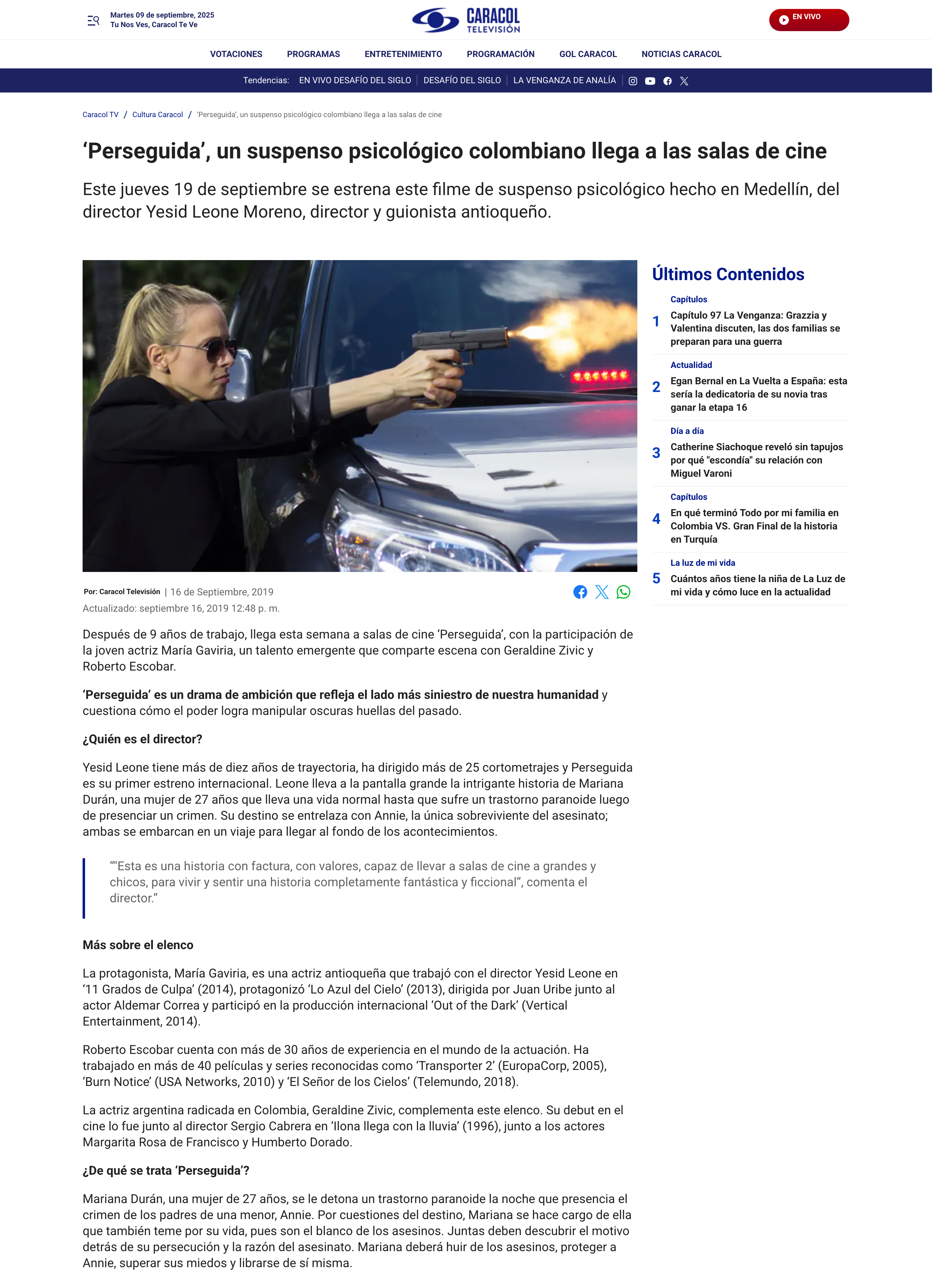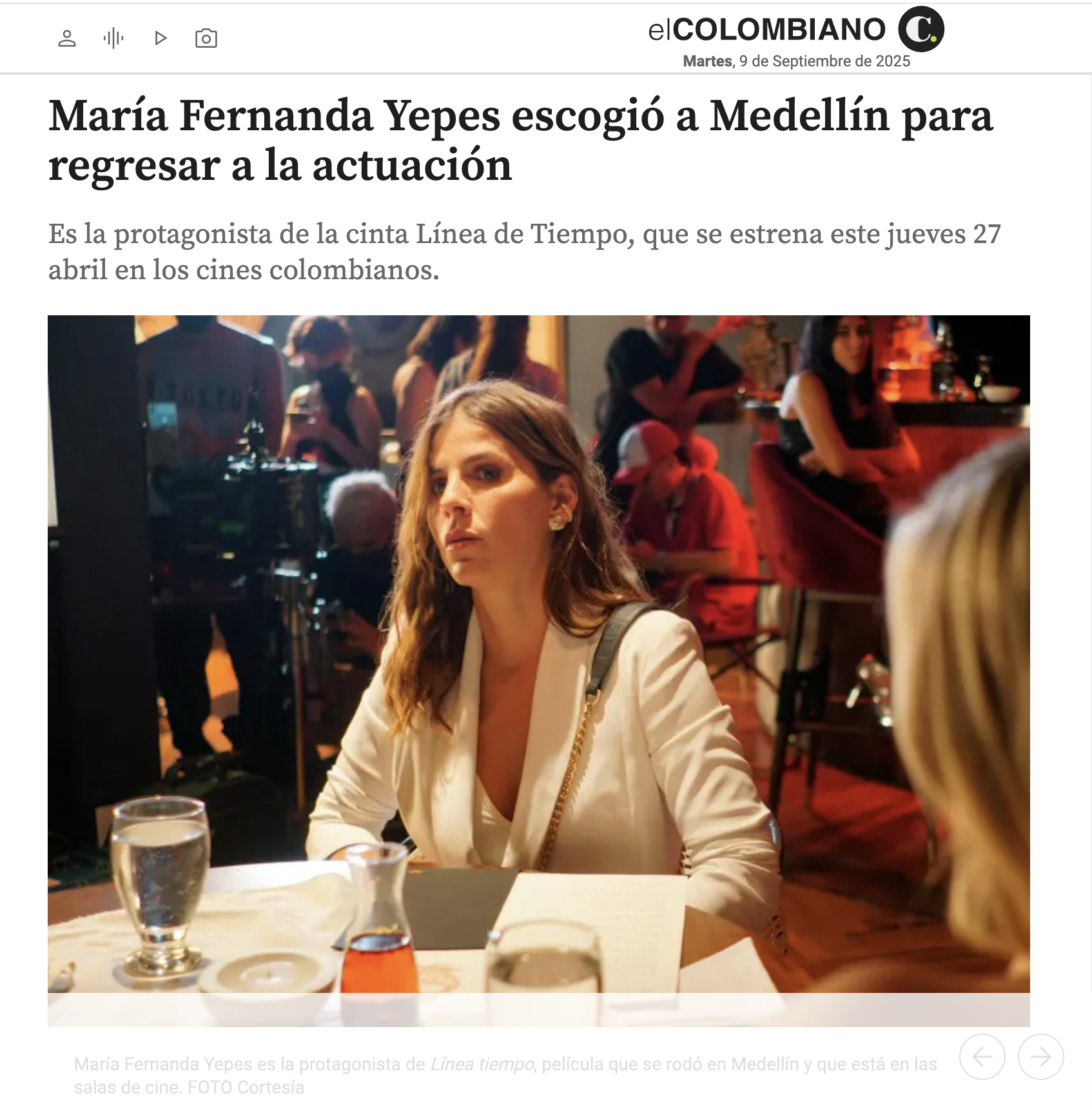 'Línea de Tiempo': María Fernanda Yepes habla de su personaje Perseguida es la cinta colombiana que fue vendida a HBO USA, China y Taiwán (LA REPUBLICA)